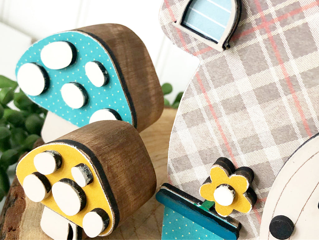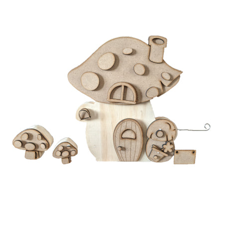 Made of 1/8" MDF and comes with a sprig of faux flowers and vinyl rub on lettering!