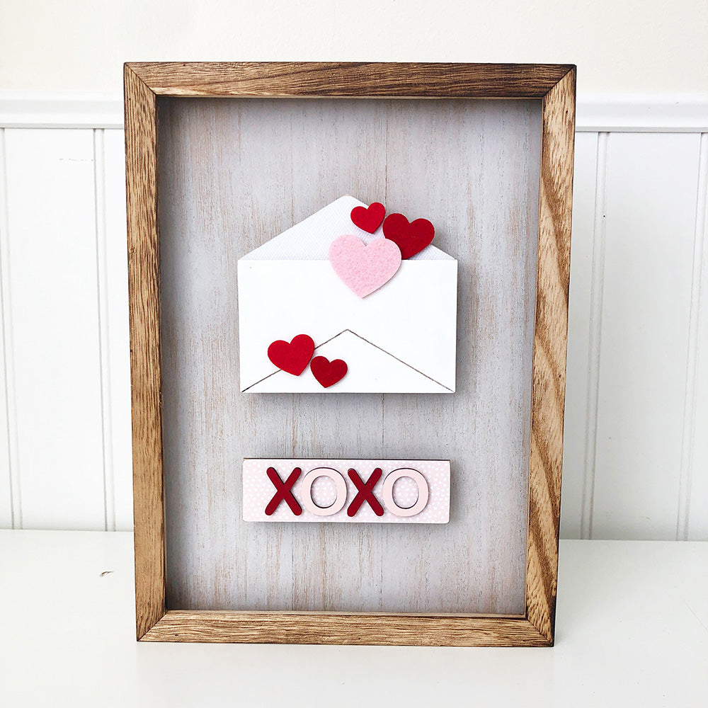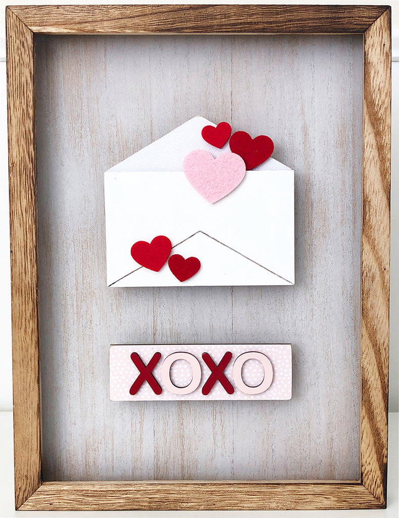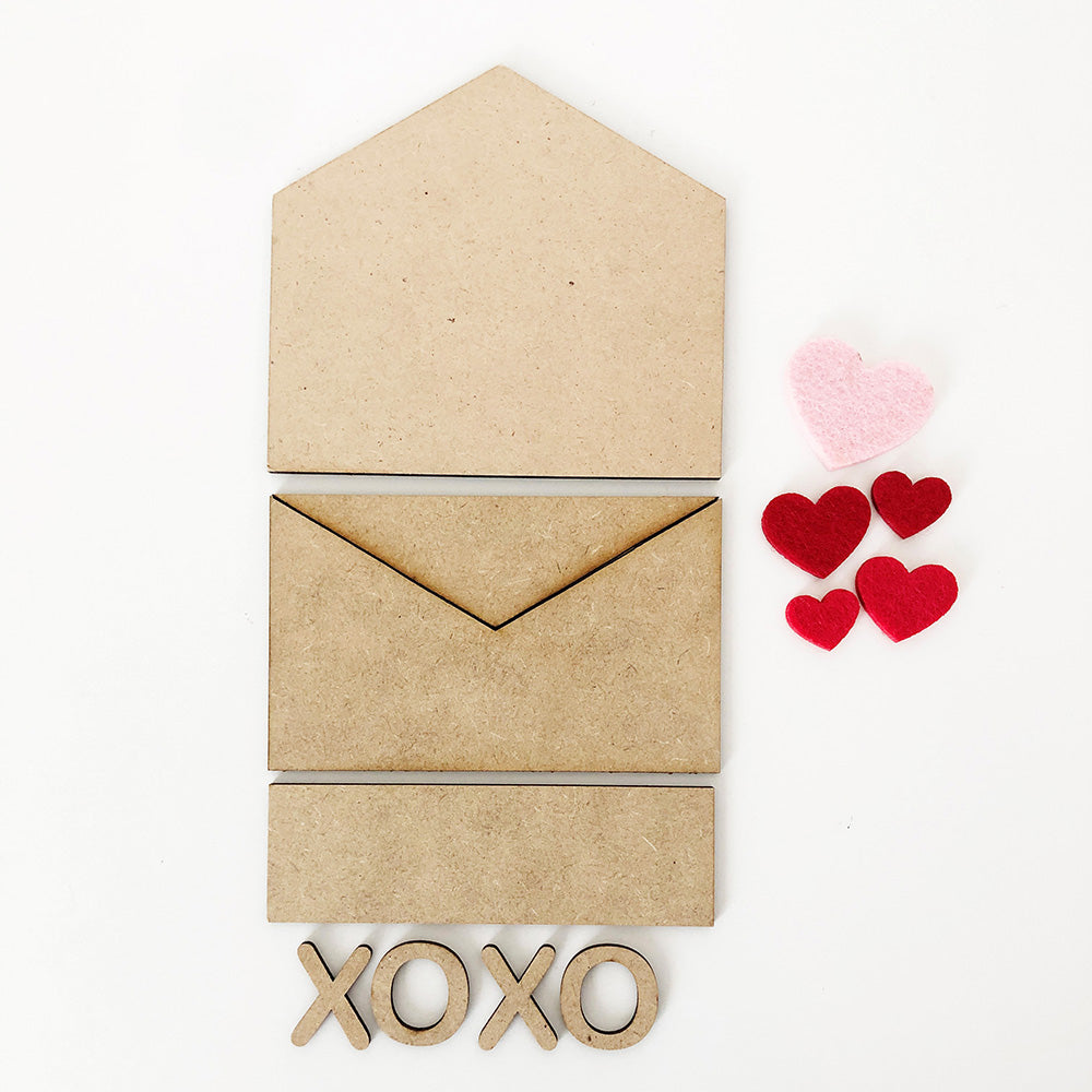 Made of 1/8" MDF and comes with felt hearts for the letter!
