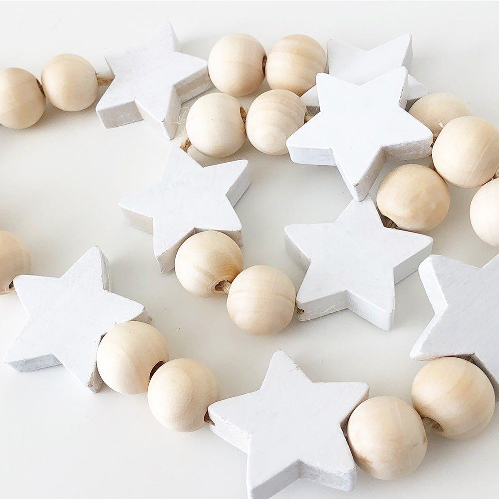 Wood Beads - Natural and White Stars